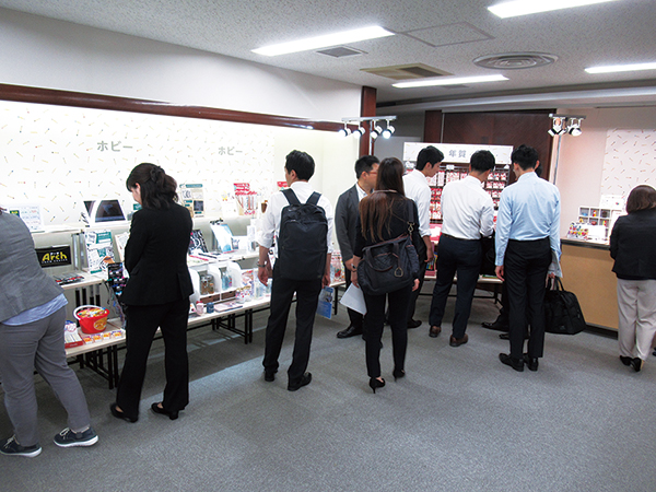 同会では、筆記具、年賀、学童など、7月から9月にかけての新製品多数が紹介されたほか、東京五輪関連商品も紹介された。