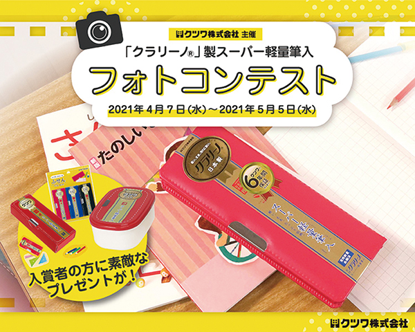 クツワ(寺浦浩之社長)は、同社のマグネット筆入「クラリーノ®」製スーパー軽量筆入のフォトコンテストを、4月7日から開始した。5月5日まで。