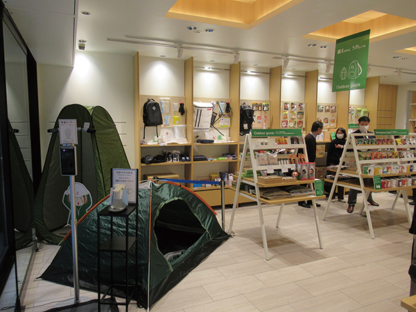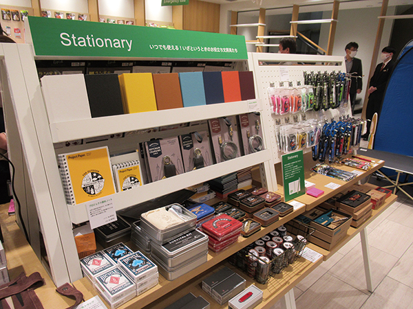 伊東屋では普段扱わない非常食や各売場に点在していた防災に役立つステーショナリーなども集合することで、つらいイメージのある防災グッズを、アウトドアのイメージなど伊東屋なりの切り口で紹介している。