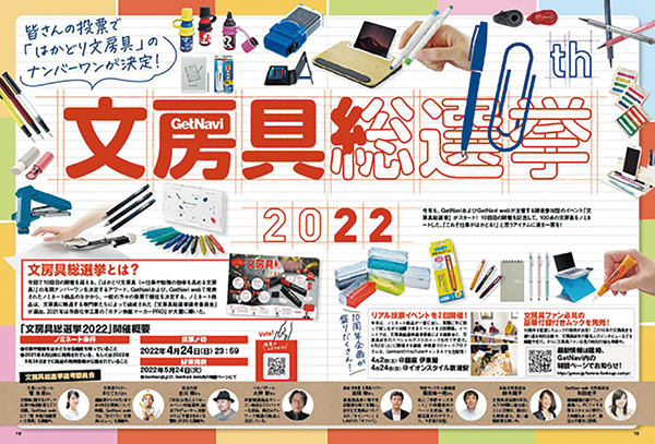 モノ情報雑誌「GetNavi」及びウェブメディア「GetNavi web」(共にワン・パブリッシング)で、2021年度に発売された新作文房具のナンバーワンを決めるアワード「文房具総選挙2022」が開催されている。