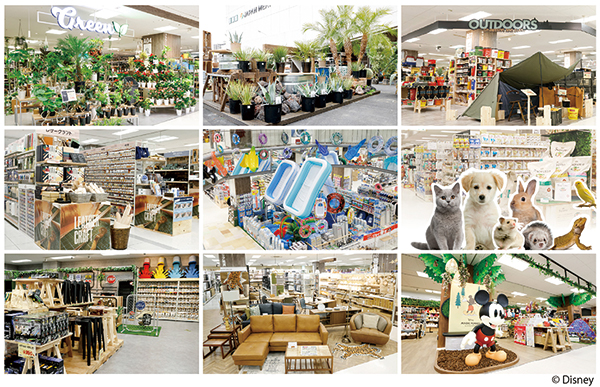 特にユーザーから要望の高い魅力ある5つのゾーンとして、(1)ガーデン・グリーンゾーン<1階売場、約1,880m2(約570坪)> 、2) ペットゾーン<2階売場、約780m2(約240坪)>、(3)アウトドアゾーン<1階・2階売場、約820m2(約250坪)>、(4) ハンディクラフトゾーン<2階売場、約950m2(約290坪)>、(5) ディズニーゾーン<2階売場、約230m2(約70坪)>を設けた。