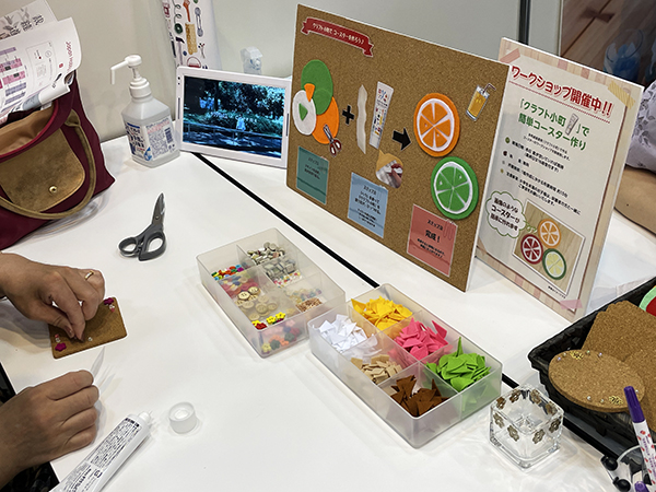テーブル毎の間隔を空けた「共通ワークショップエリア」約300席と各メーカーのブースで、目玉企画としてさまざまなシーンで楽しめるワークショップが数多く実施されたほか、会場内にハンドメイドを通してSDGsの意識を高める「サステナブルゾーン」が新設され、環境に配慮した商品を紹介。