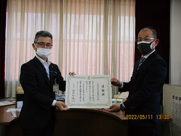 寺西化学工業(大阪市、中林一良社長)は、日興商会(尼崎市、藤縄修平社長)を通じて、尼崎市教育委員会に多数の自社製品の寄付を行ったところ、同市の各学校や幼稚園から喜びの声が寄せられ、5月11日尼崎市から感謝状が贈られる贈呈式が行われた。