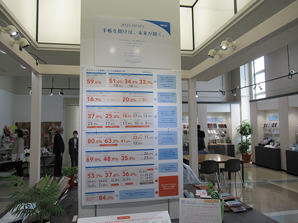今回は「手帳を開けば、未来が開く。」をテーマに設定。スマホでスケジュール管理はできるが、アナログなことはやはり手書きの手帳でこそという、1万人弱のユーザーアンケート調査結果をもとに、2023年版の新作手帳173アイテム、262SKUを揃え披露した。