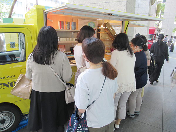 出店したのは、虎ノ門グローバルスクエア前の広場で、キッチンカーと並んで出店。営業時間は午前10時から午後2時までで、お昼休みの時間帯は周辺で働く女性客などで大賑わいだった。