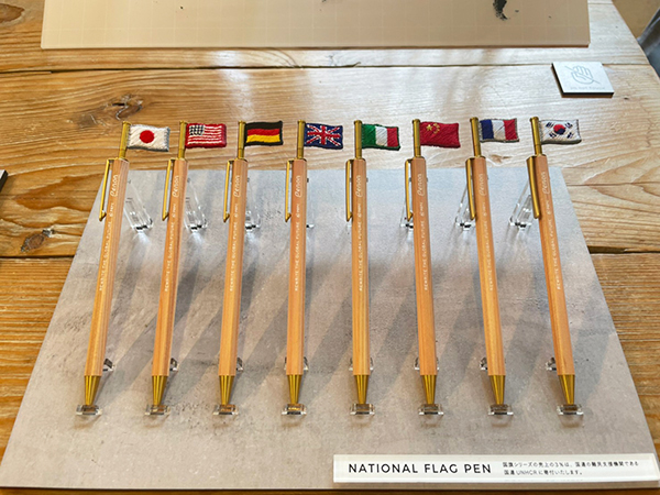 会場ではhinakaさんの実際の刺繍工房を再現した展示ブースや、ボールペン「PENON」の「メガネペンシリーズ」全12種、「ネクタイペンシリーズ」全10種を紹介。そのほか、刺繍でできたフラッグペン「国旗シリーズ」全33種なども展示された。ヒナトリエシリーズの新作3種類は6月8日発売。(F)