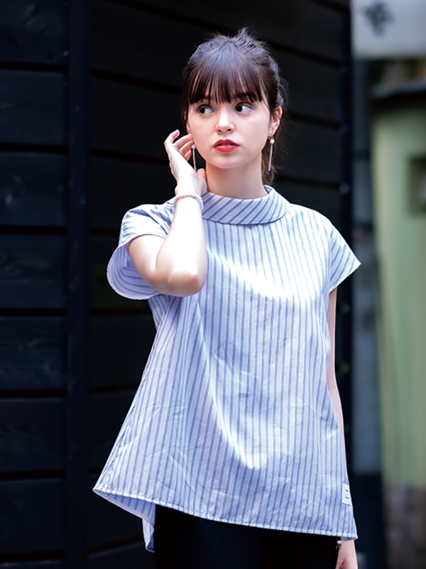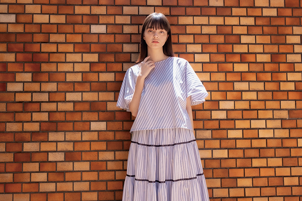 新作アイテムは、ブラウス、プルオーバーブラウス、ティアードスカート、フレアワンピースの4種。暑がうれしいコットン100%の国産タイプライター生地による。