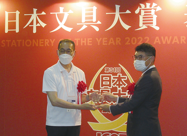 最も優れた文具に贈られるアワード「第31回日本文具大賞2022」の表彰式が7月6日午後、東京ビッグサイト東棟で開催中の「第33回 国際 文具・紙製品展-ISOT- 夏」内で行われ、レイメイ藤井が発売する、学習サポート下じき「先生おすすめ 魔法のザラザラ下じき」が、「機能部門」グランプリを受賞した。