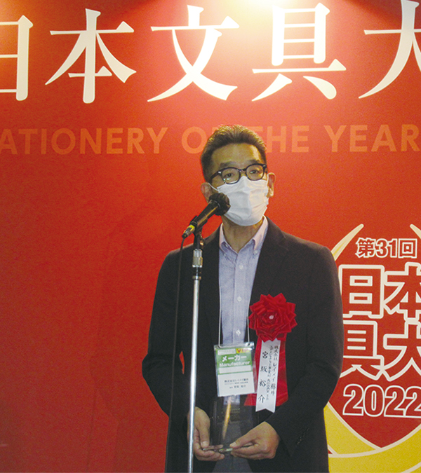 表彰式でレイメイ藤井の宮坂氏は「今回のグランプリを機会に、さまざまな理由により思い通りに正しい文字を書くことができない子どもたちにも幅広く伝えていきたい」とグランプリ受賞を喜んだ。
