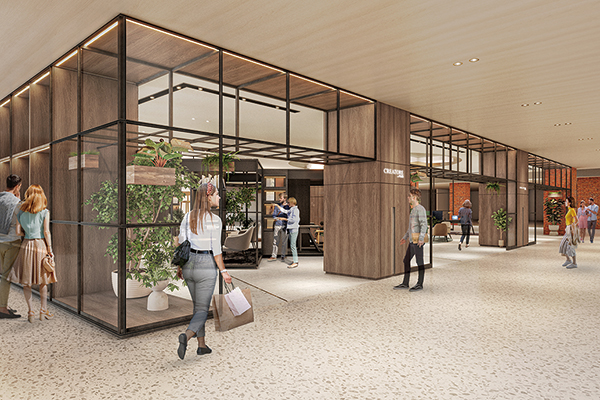 センタープラザ2階の「プラスデザインクロス」は、これからのオフィスづくりや働き方を提案する体験型ショールームとして、11月下旬にオープンする予定。