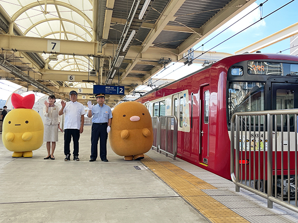 また、ラッピング列車のお迎え式も実施。「すみっコぐらし10周年号(Le Ciel)」は9月5日から11月6日の間運行。「すみっコなかま号(京急ブルースカイトレイン)」は9月5日から12月17日の間運行。当日および翌日の運行状況は京急電鉄ホームページで確認ができる。