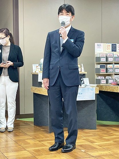 また、「これからの時代の商談会の在り方について試行錯誤を重ねてきた。お客様の商談会来場理由をリサーチすると、回答の約8割が『メーカーの新商品の情報が知りたい。売り場展開のヒントになるような情報を得たい』だった。このことから情報発信の強化をする決断に達し、名称も文具チャンネルマーケットに変更し、ウェブサイトとインスタグラムのアカウントも開設。ここに行けば最新の文具情報が得られる、トレンドがわかる、売り場展開のイメージが湧くという場にしていきたい。これからの時代、問屋として商品だけでなく情報も流通させていく事を強化していきたいと思っておりますので、ぜひご期待いただきたい」とあいさつした。