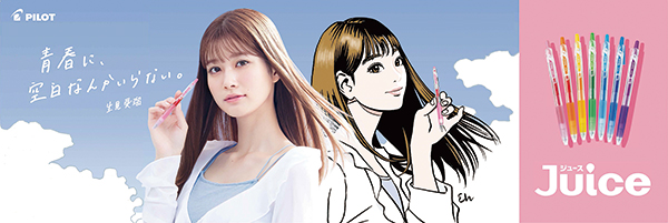 パイロットコーポレーション(伊藤秀社長)は、ゲルインキボールペン「ジュース」のプロモーションとして、人気モデルの生見愛瑠(ぬくみめる)さんと人気イラストレーターの江口寿史さんを起用した「ジュースで青春!」キャンペーンを12月1日から開始した。
