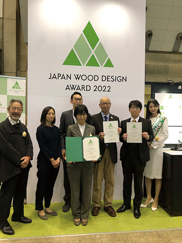 7日午前10時に東6ホール特設ステージで「ウッドデザイン賞2022」(一般社団法人日本ウッドデザイン協会主催)表彰式が行われ、奨励賞を受賞した三菱鉛筆の鉛筆の資源循環システム「フォレストサポーター鉛筆」が表彰された。また記念シンポジウムとパネル展示・交流会も行われた。