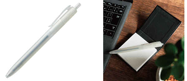 同商品は、回収されたクリアホルダーから再資源化した再生樹脂を軸材へ使用し、リフィルには“クセになる、なめらかな書き味。”の「ジェットストリーム」を搭載したノック式油性ボールペン。