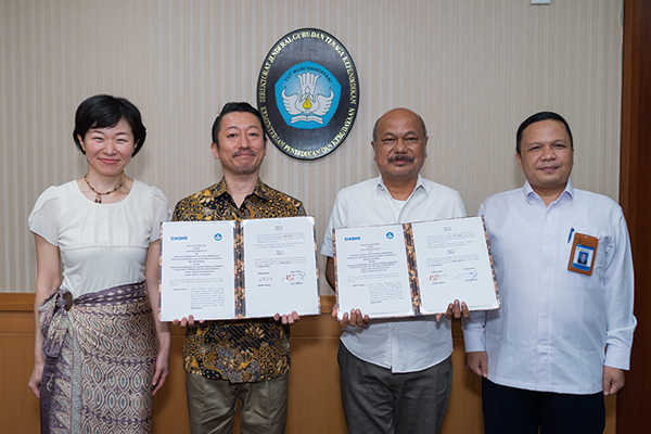カシオ計算機は、インドネシアでの教育事業において、同社グループ会社であるカシオシンガポールと教育文化省教職員総局が、関数電卓を活用した高校数学授業の定着に向けた協業を行うことで合意し、覚書を締結したと発表した。