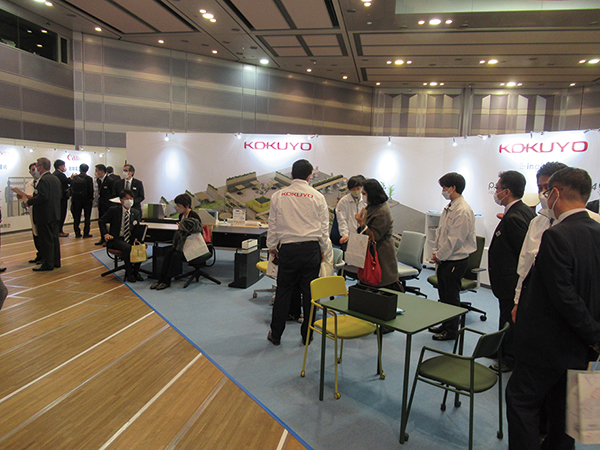 このうち都ホテル尼崎2階のオクト会場では、最新のオフィス家具やOA機器を展示し、この3年間で働き方や働く場所の環境が大きく変わる中で、対応する商品の説明にじっくりと耳を傾ける来場者が多かった。