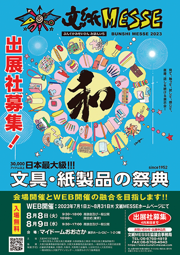 文紙MESSE協議会(大阪・中央区)は、今年8月8日(火)~9日(水)に、マイドームおおさかで開催する、日本最大級の文具・紙製品の祭典「文紙MESSE2023」のポスターを公開した。