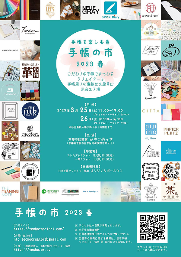 日本手帳クリエイター協会(本社:滋賀県守山市、代表理事:宮崎じゅん、青木千草)は、2023年3月25日(土)と26日(日)に「手帳の市2023春」を京都市勧業館みやこめっせで開催する。