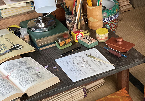 東京・練馬区にある同園では昭和27年から28年頃の書斎が再現されており、4月3日から公開開始された。机上にはPILOT万年筆やヤマト糊などが置かれている。