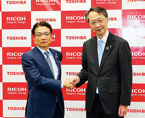 リコー(大山晃社長)と東芝テック(錦織弘信社長)は5月19日、会社分割等により複合機等の開発・生産に関する事業を統合することを両社の取締役会で決議し、2024年第一四半期にも合弁会社を設立すると発表した。