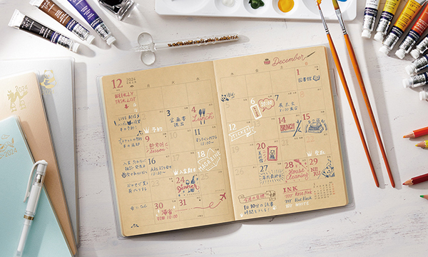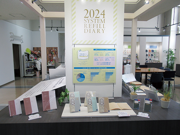 ダイアリーは、SDGsに貢献する「2024竹紙ダイアリー」が注目。中越パルプ工業川内工場(鹿児島・薩摩川内市)で生産された国産竹100%の竹紙100ナチュラルを使用したダイアリーだ。竹にちなんだキャラもポイントとなっている。