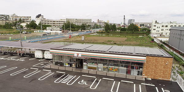 セブン‐イレブンの店舗ではこれまで、CO2排出量削減を目指した省エネ・創エネ・蓄エネに係る様々な設備の実証実験を通して、適合性や効果を見極めながら、水平展開を進めている。