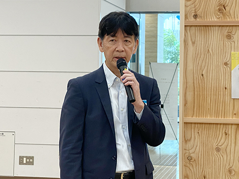 蔀社長は午前8時45分からの開会式で、「6月で25期が前年比106.8%、売上高103億円と前年を超えて終了した。景気は回復傾向で宝石や時計が売れているというが、日用品や消費財については節約志向が強い状況のようだ。物が売れない、また人手不足の時代に、リアルとオンラインの場で情報伝達力と商品訴求力を高めることについてどんどんチャレンジしていきたい。たとえば昨日は15社の出展メーカーに協力してもらいインスタライブを開催し、閲覧数は徐々に増えてきている。そのほか、デジタルサイネージの活用もリアル店舗で実証実験を繰り返しながらノウハウを蓄積している。ノウハウが貯まった段階で各メーカーさんとのタイアップなども考えているのでご協力をお願いしたい。」などと挨拶した。