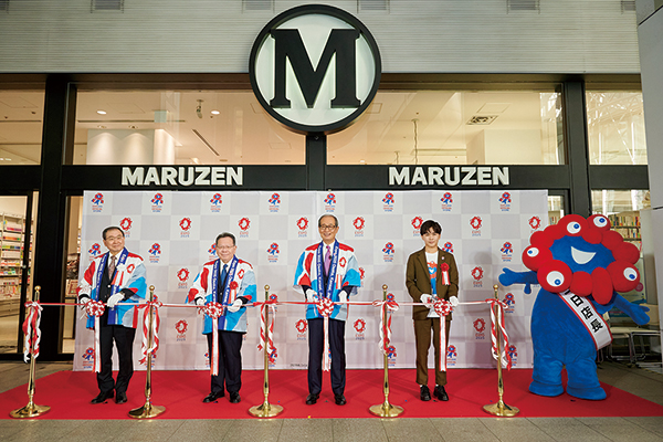 22日午前に店舗前でオープニングイベントが開かれ、日本国際博覧会協会十倉雅和会長(経団連会長)、経済産業 酒井庸行副大臣 、丸善ジュンク堂書店中川清貴社長に、オープン記念イベントゲストの俳優の鈴木福さんと、同万博公式キャラクターのミャクミャクによるテープカットで開店した。