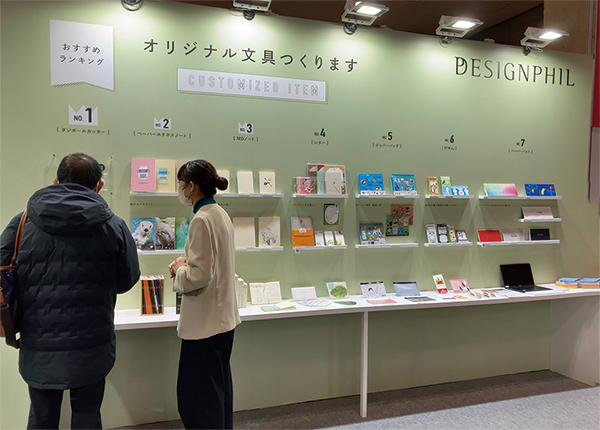 文具関連では、筆記具から電子文具までが出揃う「ステーショナリー&ペーパーグッズフェア」と輸入文具やデザイン文具などの「STYLISH文具フェア」が行われ、東1ホールに、デザインフィル、サンビー、共栄プラスチック、タイヨートマー、マックス、マルマンなどが出展したほか、日本出版販売も文具雑貨を紹介した。