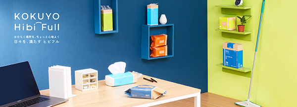 コクヨは2021年に「長期ビジョンCCC2030」を策定し、「WORK&LIFE STYLE Company」へのシフトを推進しており、今回新たな事業領域への拡張として、おもにオフィスシーンで便利に使える生活用品新ブランド「KOKUYO HibiFull」を立ち上げた。
