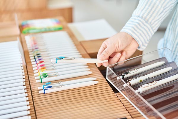 o-i STUDIOでは、三菱鉛筆の鉛筆、色鉛筆、ボールペン、サインペンなど500本以上の筆記具を用意するほか、ワークショップなど様々な表現体験を試すことができる。