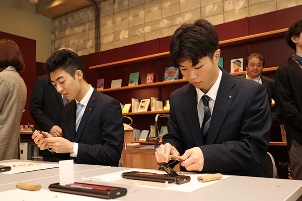 新入社員の大半にとって初めての経験である小刀を使用した鉛筆けずりに、彼らは悪戦苦闘しながらも前向きに捉え、積極的に挑戦した。