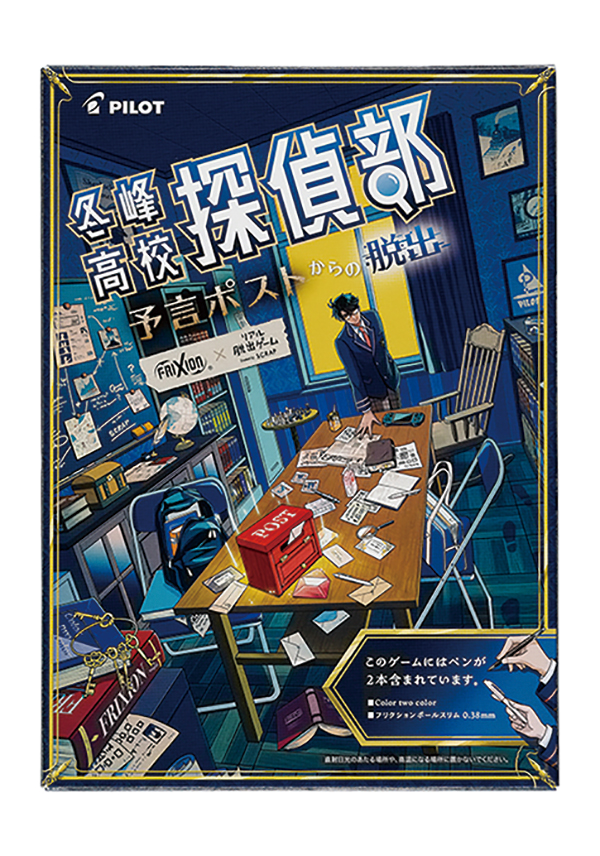 パイロットコーポレーション(藤﨑文男社長)は、世界累計販売本数が44億本以上の「フリクション」シリーズと、全世界で1300万人以上を動員する「リアル脱出ゲーム」を企画運営するSCRAPとのコラボレーションによる、オリジナルストーリーの謎解きキット「FRIXION×リアル脱出ゲーム 冬峰(ふゆみね)高校探偵部 予言ポストからの脱出」(税込3300円)を4月24日から数量限定で発売した。