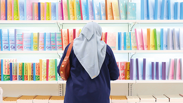 30分以上の時間をかけて店内をじっくり回る学生や、店内に設置されたキャンパスノート工場直送の原紙ロールに試し書きできるコーナーで足を止める親子など、初日は200組を超える購入客があった。