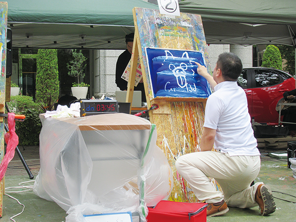 6月9日「ロックの日」に、5分間の即興アートバトル「筆ロック」が、東京・港区の港区立汐留西公園で開催され、馬印(名古屋市、加藤泰稔社長)が商品協力で一役買った。