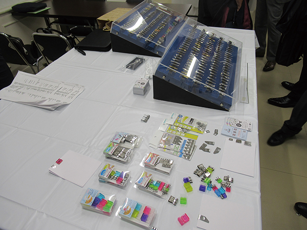 このうち、東京金属工業(東京都葛飾区、藤原浩純社長)は、プレス加工による筆記具用クリップ、プレス加工による筆記具用リング及びノックカバー、自社開発のペーパークリップなどを紹介し、同社の強みを来場者に訴求した。