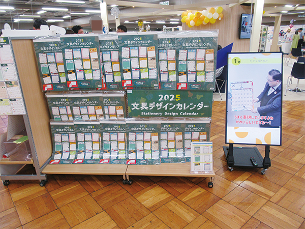 また各メーカーの協力による記念商材として、「2025文具デザインカレンダー」なども展示された。