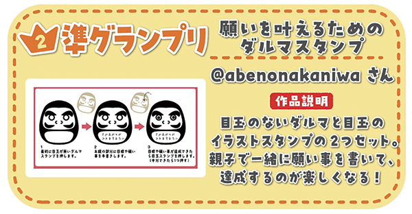 準グランプリ…@abenonakaniwa さん 「願いを叶えるためのダルマスタンプ」