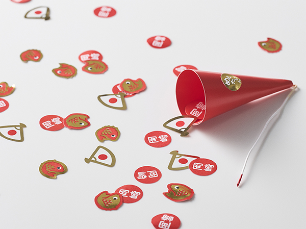 グランプリを受賞したのは榎本千紘氏の「めでたいん!」で、紐を引くとパンッと音が鳴り、名前がひらひらと宙を舞うパーティークラッカー。中には主役の名前のしるしをしのばせることで、少し特別なサプライズを仕掛けられる。誕生日でも、結婚式でも、授賞式でも、名前で主役を引き立て最高の瞬間を作り出す、めでたいしるしとして提案した。
