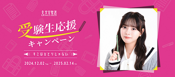 番組には俳優の矢吹奈子さんがパーソナリティを務め、今年の受験生応援キャンペーンガールである齊藤なぎささんをゲストに迎える。