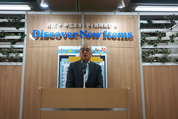 日販の富樫建社長は午前8時40分からの開会式で、「日販グループは、グローバルな価値基準を携え、環境にも人にも配慮した経済活動をするために、3年前から「ESG経営」に取り組んでいます。その一環として、今回の商談会では、使用する什器を繰り返し使用可能な素材のものに変更しました。この什器を最後まで使い尽くせるように、この先も皆様とお取引ができ、商談会が続けられるような未来を創っていきたいと思います。そんな未来を創っていけるよう、今年度はより一層、文具と書店の連携を強化した体制にしました。私どもの取引書店様の文具の売上を見ますと、2023年3月から2025年5月まで27か月連続で前年超えが続いております。市場のシュリンクが続く出版業界においても、文具という商材は、もはやなくてはならない心強い存在だと感じております。この勢いをそのままに、本日の商談会も盛り上げてまいりましょう。(一部抜粋、要約)」とあいさつした。