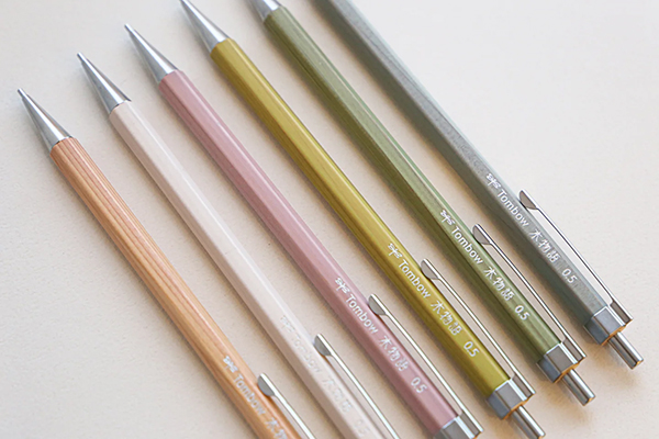 文具の商品例で紹介された、新商品「シャープペンシル木物語」(各税込594円、トンボ鉛筆) は、森林認証木材を本体軸に使用したシャープペンシル。鉛筆と同じ六角軸で握りやすく、クリアカラー塗装により、天然木ならではの木目や質感を楽しめる。全6色展開。