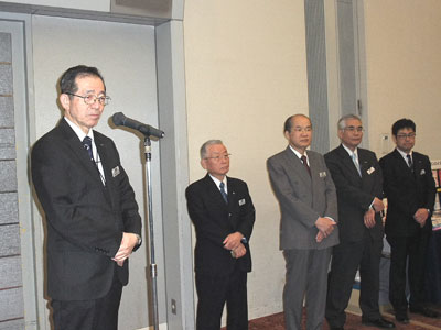 21日午前9時40分からの開会式で、東京エコール政木社長は「大震災直後でもあり自粛も考えたが、かえって今こそ活力を示すときではないかと実施に踏み切った」と挨拶、出展60社のメーカーを代表してサンスター文具小林大地社長が「がんばろう」と音頭をとって気勢をあげた。