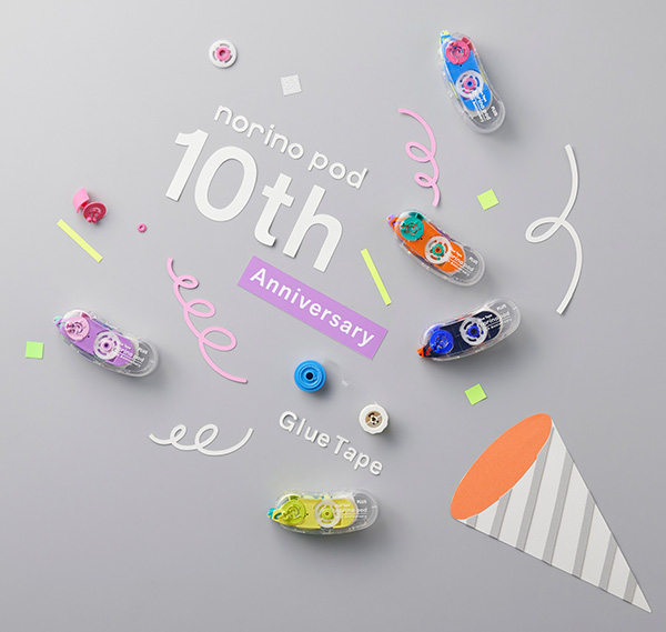 プラスは、つめ替え式テープのり「norino pod(ノリノポッド)」の発売10周年を記念した限定モデル「ノリノポッド<限定>マルチカラー」(本体+リフィル付きセット、税込550円)を、2026年2月10日(火)より発売する。
