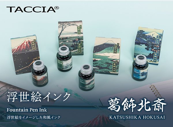 ナカバヤシは、高級筆記具ブランド「TACCIA」より、浮世絵をイメージした万年筆用インク『浮世絵インク 葛飾北斎』(税込2,420円)を、2026年3月下旬から順次発売開始する。