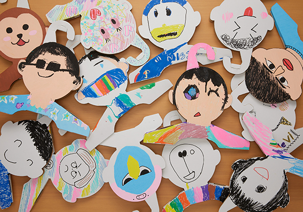 自分や近くにいる人の顔を描くことは、まだ文字を書いたり言葉にして思いを伝えることが難しい子どもたちにとって、自己表現の一つの方法となる。