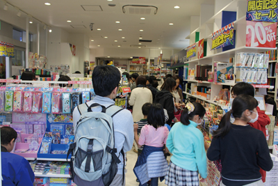 開店セールとして、28日~4月3日まで全品20%オフのセールを開催し、開店直後から店内は家族連れや子ども同士などで大混雑し、通常は1台のレジを2台に増やしてフル稼働した。新店では独自のポイントカードも展開する。