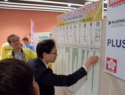 文具フェスタには大分市教育委員会、大分合同新聞社、NHK大分放送局、OBS大分放送など7社のメディアが後援、佐藤大分市長も会場に顔を見せた。