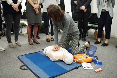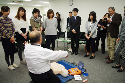 同社は、2009年のAED販売開始時からAEDの最適配置と心肺蘇生の普及による救命率の向上を目指し、2010年からAED心肺蘇生講習の社員インストラクターの育成を開始した。現在282人の社員が取引先などで講習を実施し、心肺蘇生の普及に取り組んでいる。